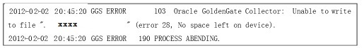 | Oracle GoldenGate GGS ERROR: 磁盘空间不足 |