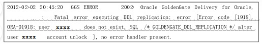 error [Error code [1918],ORA-0198: user xxxx does not exit,SQL /*GOLDENGATE_DDL_REPLICATION*/alter user xxx account unlock],