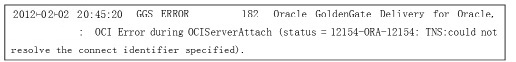| Oracle GoldenGate GGS ERROR: TCP/IP 故障 |